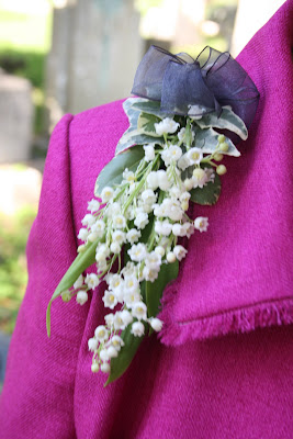 The Brides Mum wore a corsage created entirely of Lily ofthe Valley to coordinte with her daughter perfectly